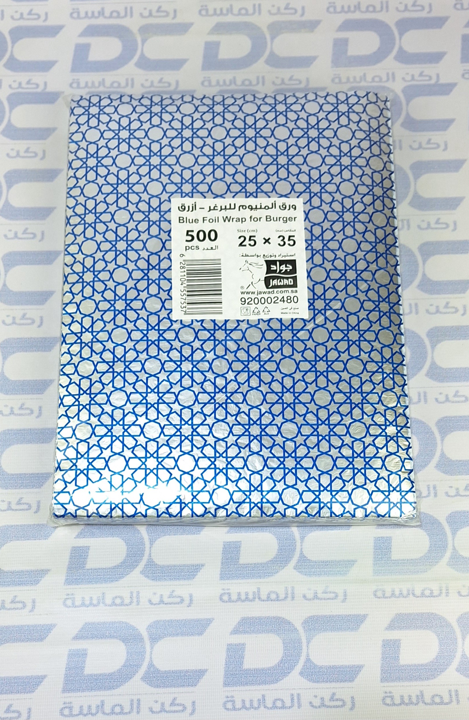 ورق ألمونيوم للبرغر أزرق جواد 35 * 25 سم عدد 500 ورقة