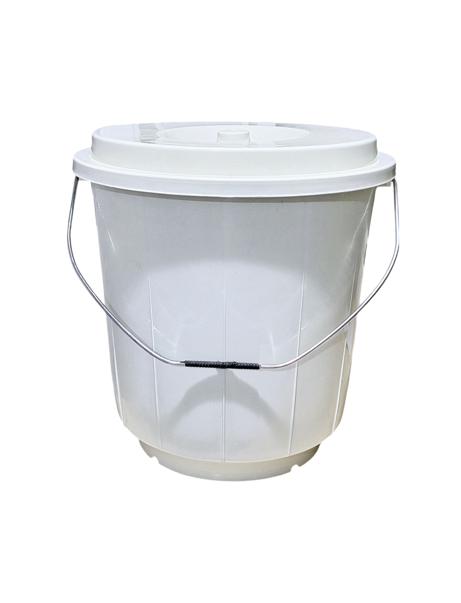 سطل سعته: 20 لتر. مادة الصنع فائقة الجودة. غطاء متين وخفيف في الوقت نفسه. مقبض من الفولاذ القوي حتى لا يسقط الدّلو أو يندلق ما بداخله. صالح للاستخدام كسلة قمامة خفيفة في الغرف. يصلح لتخزين الحبوب أو المواد الغذائية في المطبخ. شكل أنيق ومتميز.