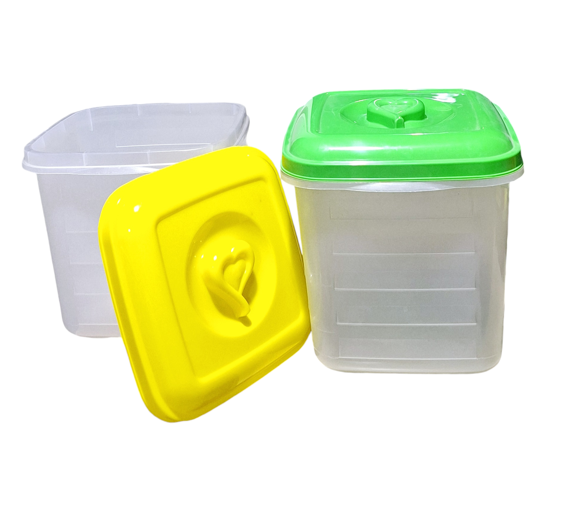 حافظة طعام بلاستيك شفاف مربعة بالغطاء الملون 10 لتر