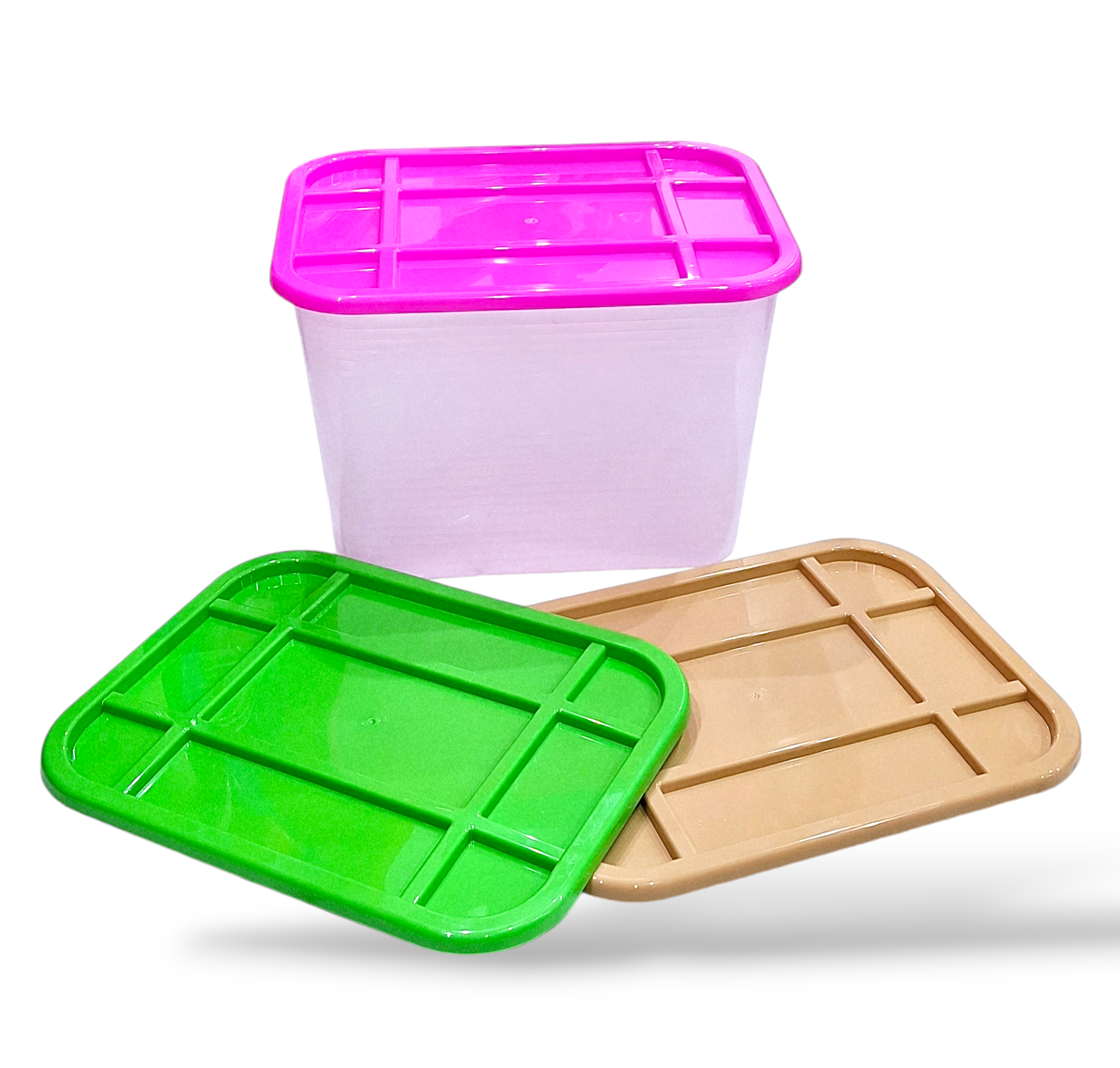 صندوق تخزين بلاستيك شباك بالغطاء الملون 55 لتر