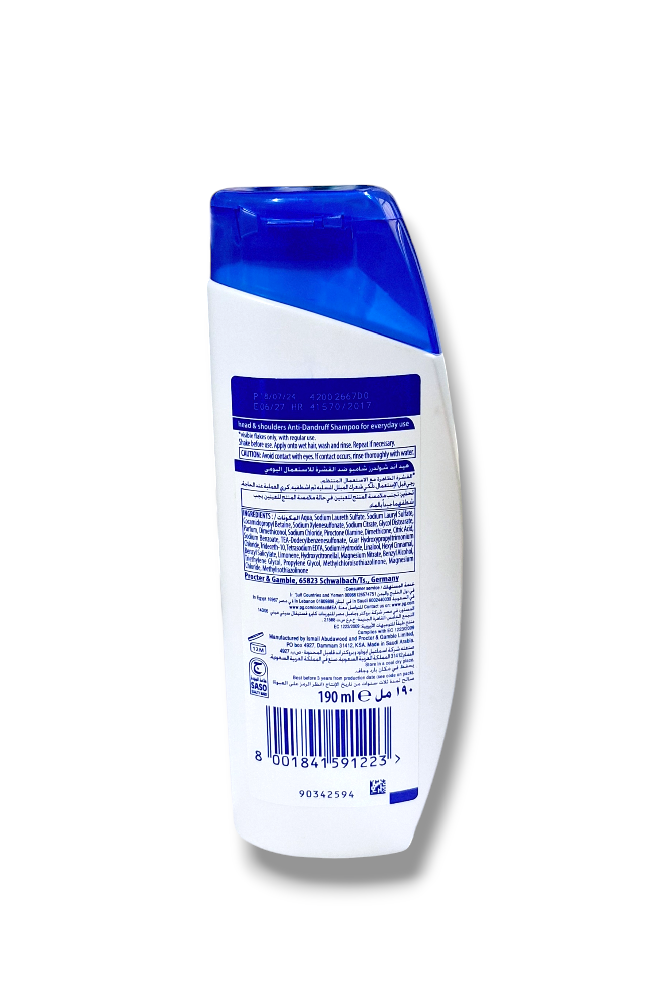 شامبو هيد اند شولدرز ضد القشرة إنسيابي وحريري للشعر العادي إلى الجاف، حتى المصبوغ والمعالج كيميائياً سيطرة على التجعيد لمدة 24 ساعة مع مرطب للشعر يساعد على تنعيم وإصلاح الشعر الجاف والمجعد لمظهر حريري وناعم شامبو لطيف ومتوازن الحموضة للإستعمال اليومي