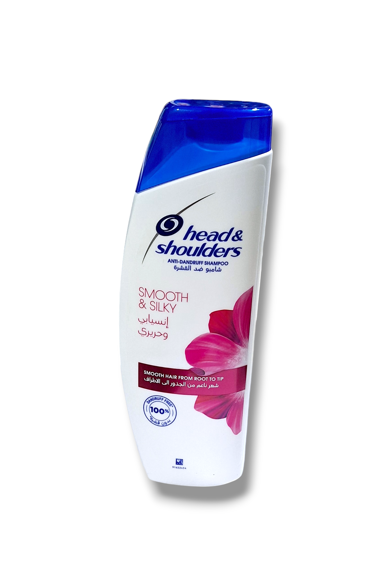 شامبو هيد اند شولدرز ضد القشرة إنسيابي وحريري للشعر العادي إلى الجاف، حتى المصبوغ والمعالج كيميائياً سيطرة على التجعيد لمدة 24 ساعة مع مرطب للشعر يساعد على تنعيم وإصلاح الشعر الجاف والمجعد لمظهر حريري وناعم شامبو لطيف ومتوازن الحموضة للإستعمال اليومي