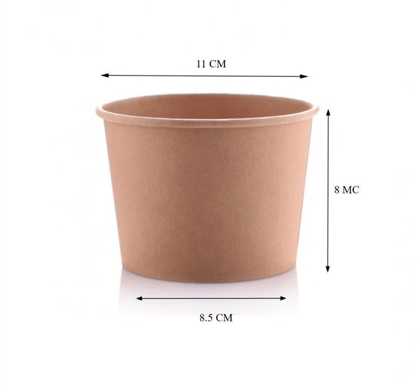 زبدية ورق بني كرافت دائرية بالغطاء لحفظ وتعبئة الطعام والمأكولات الطازجة والشوربة بأنواعها , للاستخدام بالمطاعم والمنازل اثناء الخروج في العطلات الأسبوعية واوقات الراحة وأيضا استخدماها في العمل مثل الانش بوكس وقت الغداء