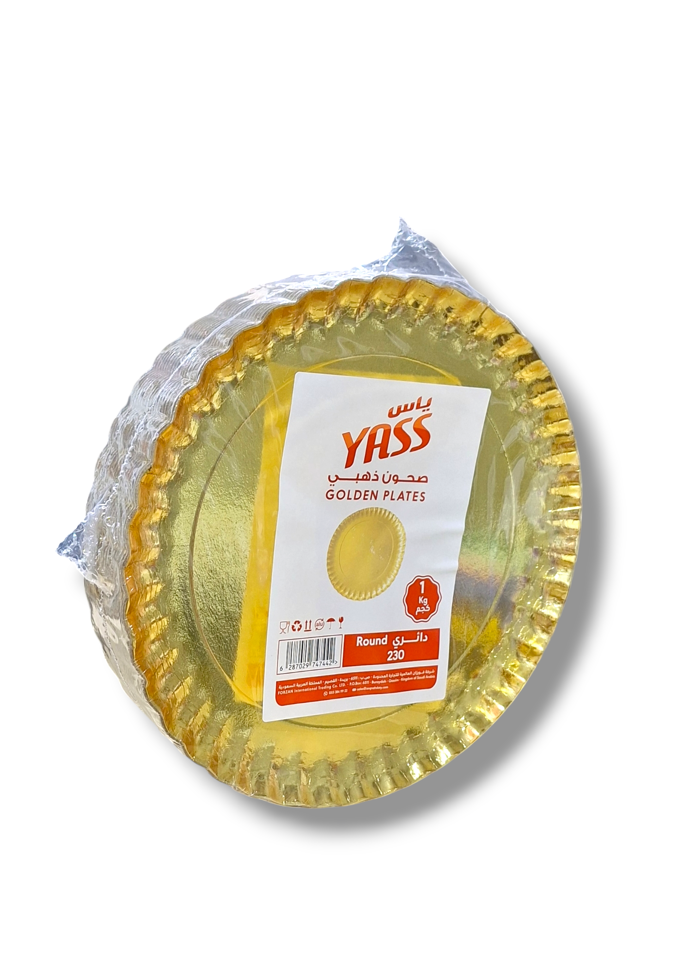 صحون ورق ذهبية بشكل دائري للكيك والحلويات بأنواعها والشكولاتة ، من الورق المقوي لاستخدامه في محلات الحلي والكيك وتسهيل تقديم الحلي في المناسبات والزواجات بشكل مميز وراقي . قطر القاعدة : 200 مم