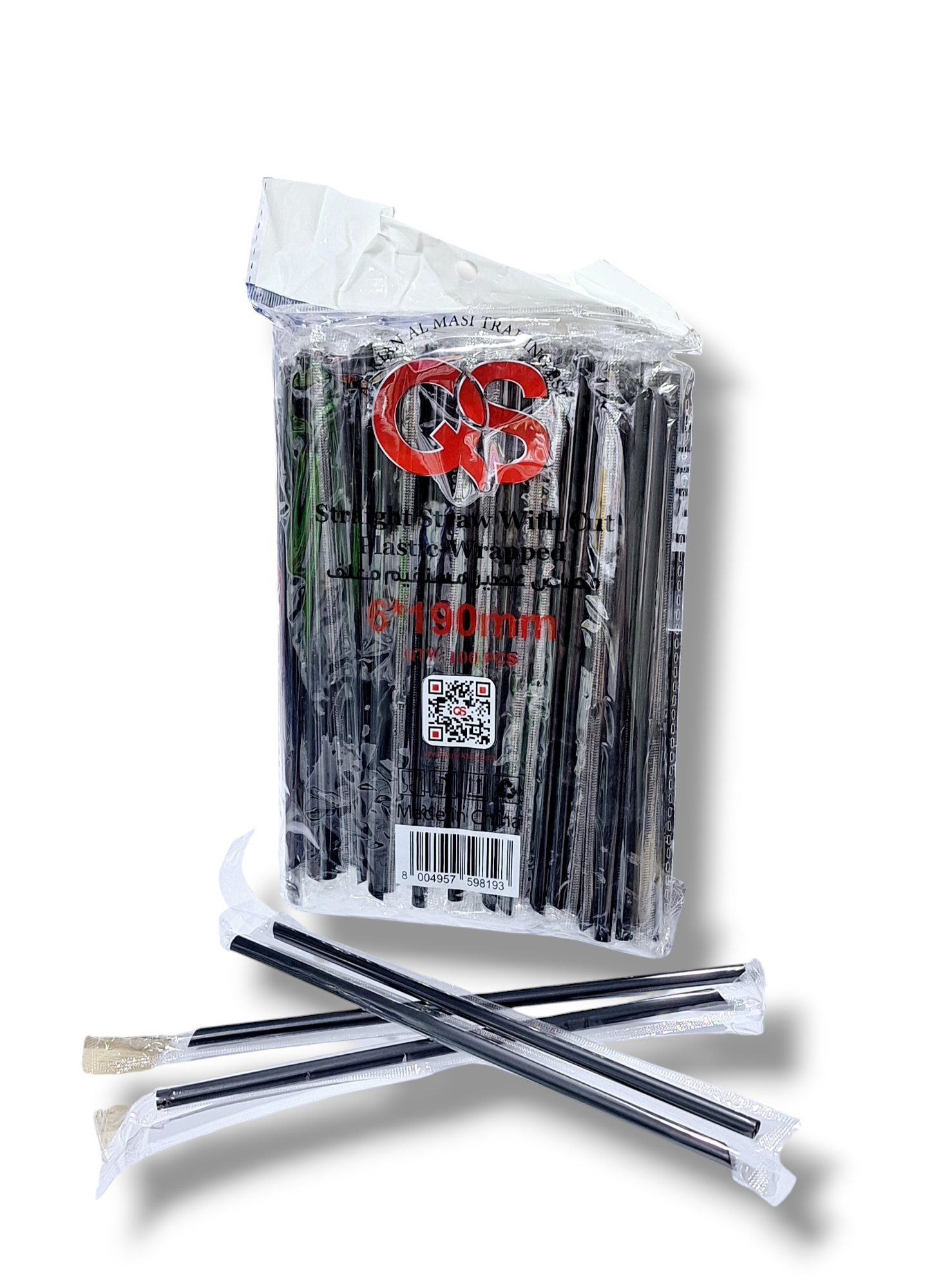 مصاص عصير مستقيم مغلف QS عدد 100 حبة ( 6 * 190 مم )
