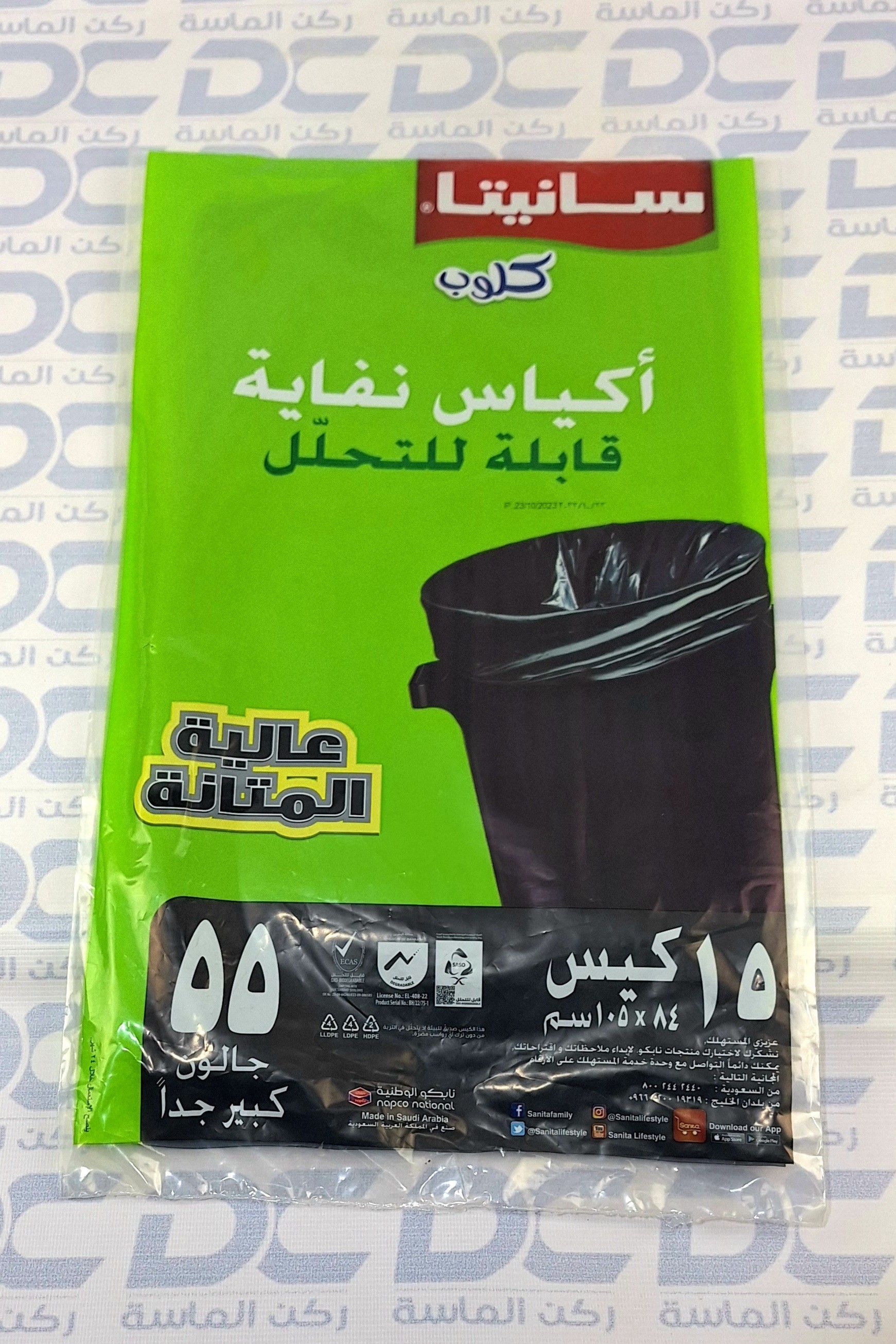 أكياس نفاية سانيتا كلوب 15 كيس 55 جالون كبير جدا 84 * 105 سم
