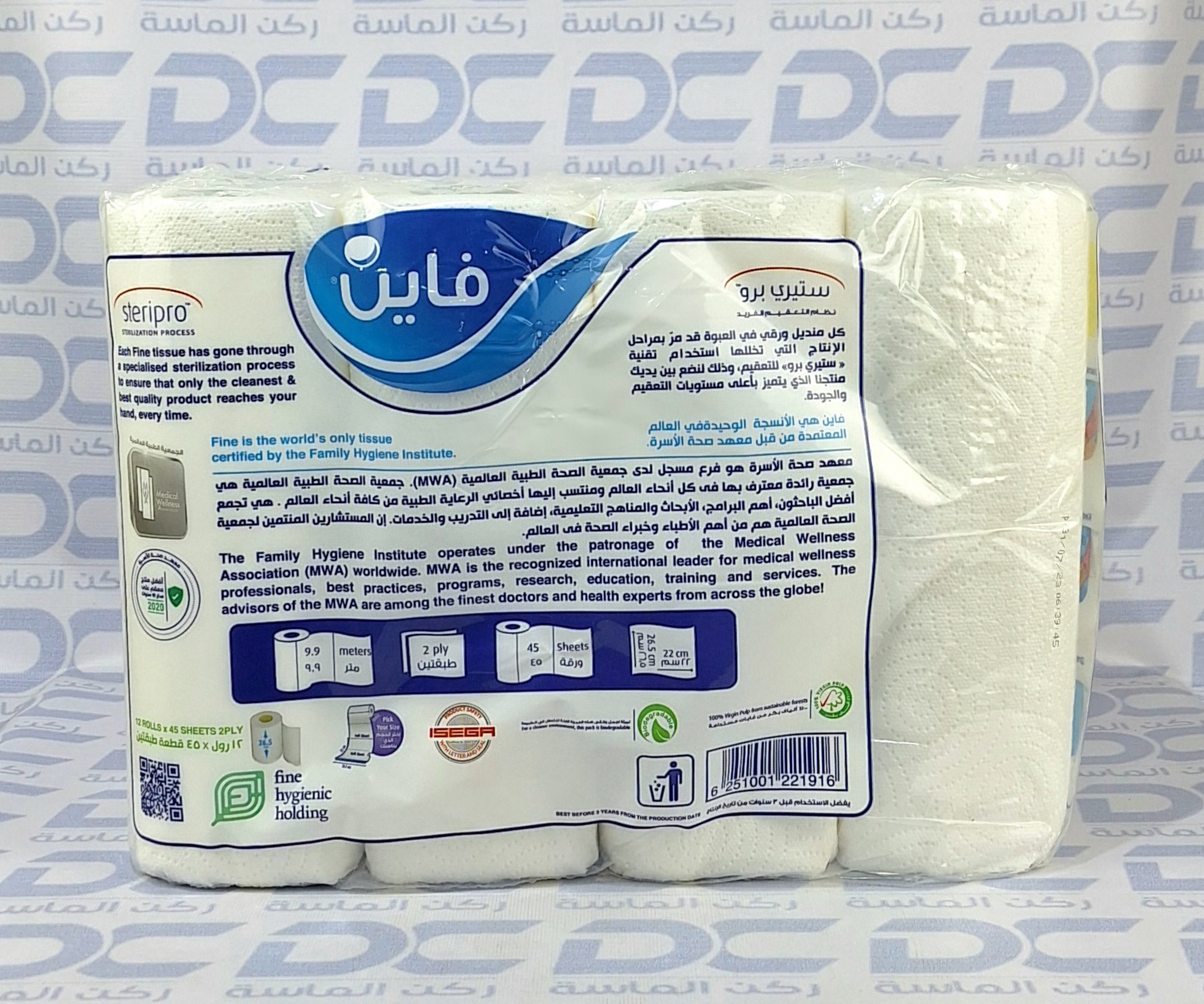 ورق مطبخ نشاف فاين 12 رول أبيض مزدوج معقم ومتعدد الاستعمالات