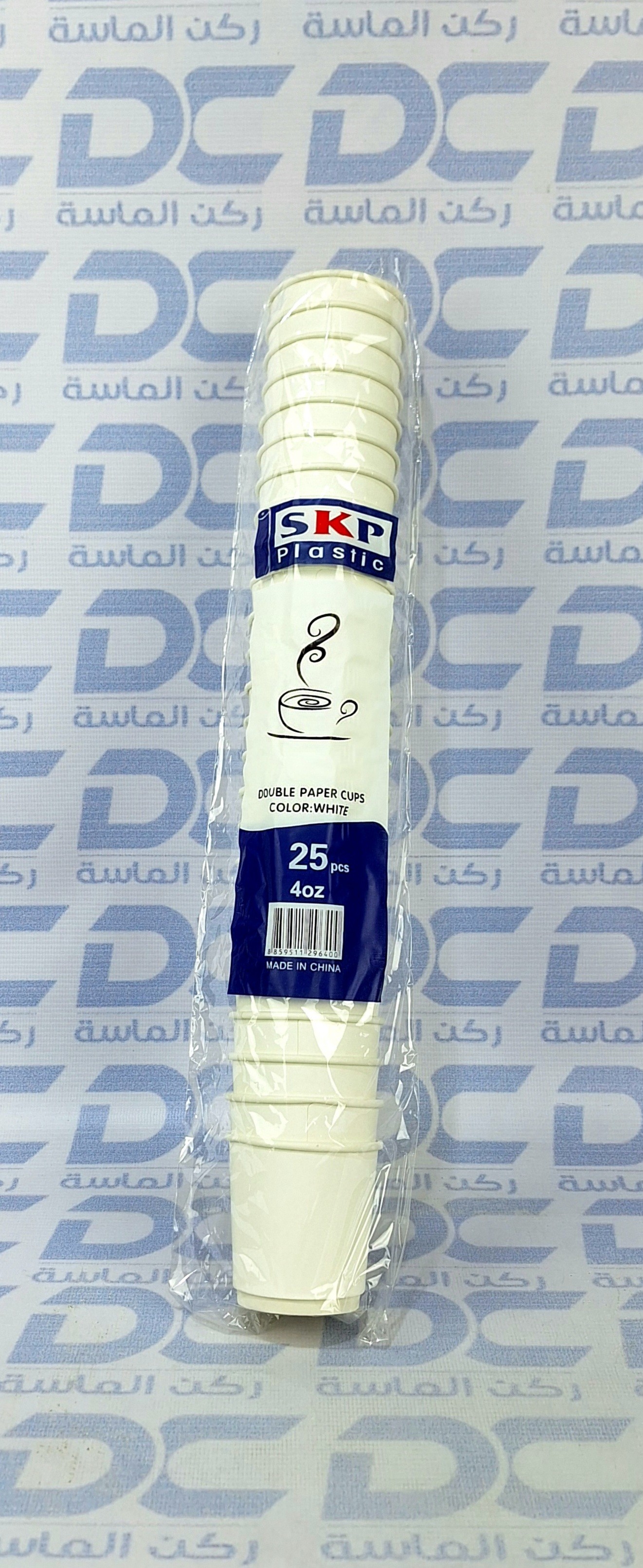 أكواب ورقية دبل SKP بيضاء 4 اونص شدة 25 حبة