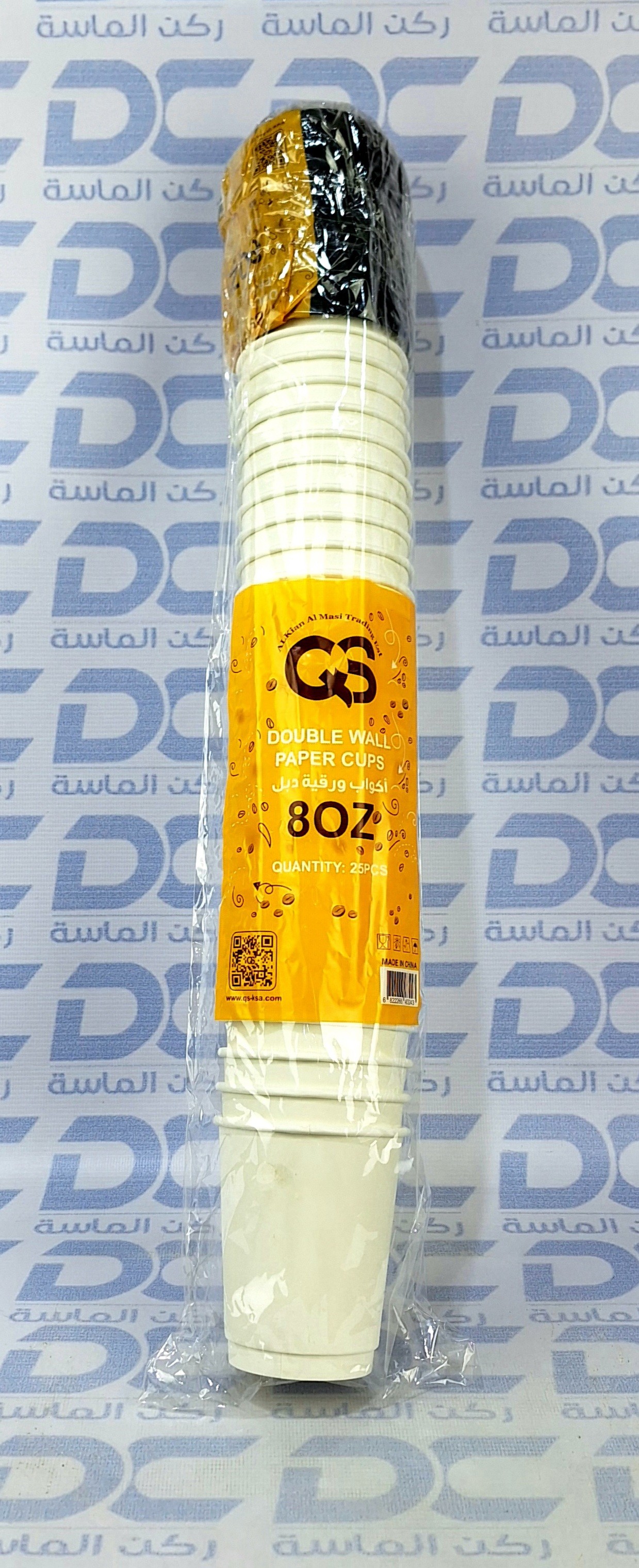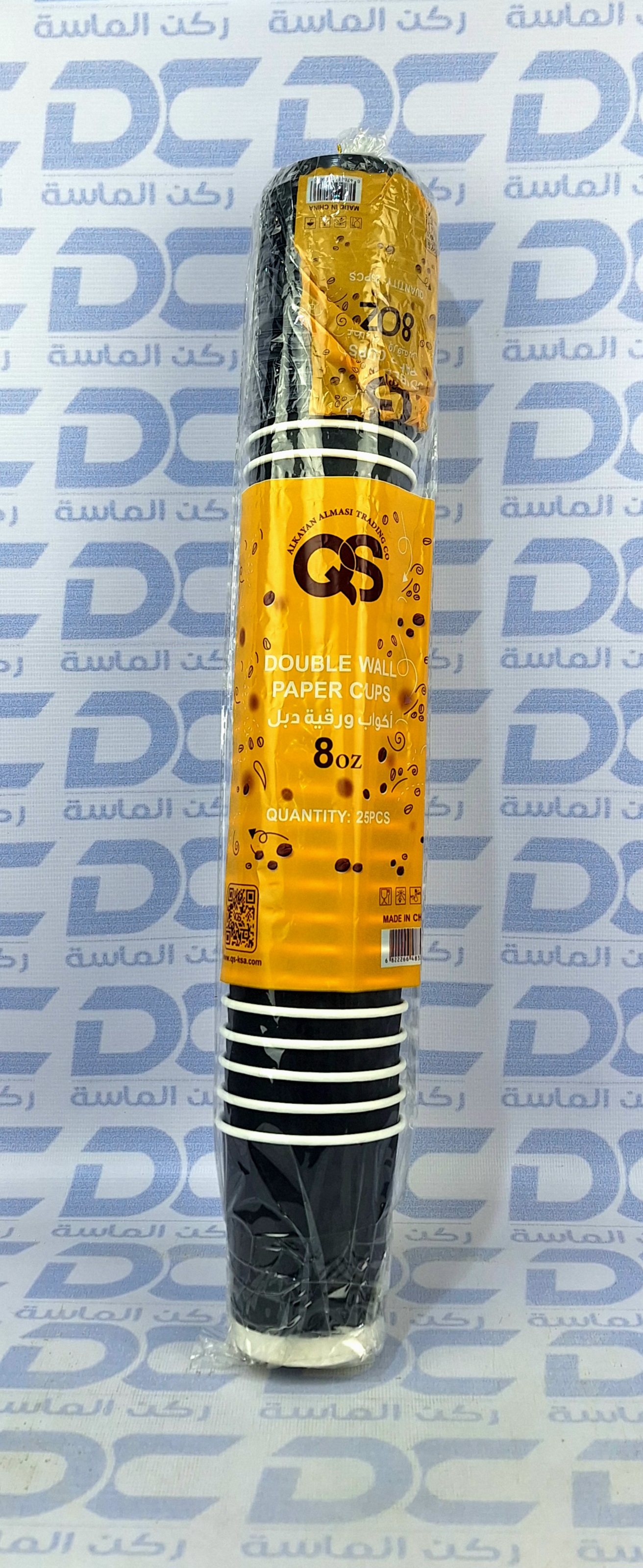 أكواب ورقية دبل QS أبيض وأسود 8 اونص شدة 25 حبة