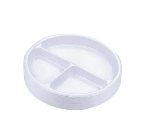 صحن بلاستيك دائري أبيض فودي رقم 22 مقسم للعديد من الاستخدامات والتحضير السريع