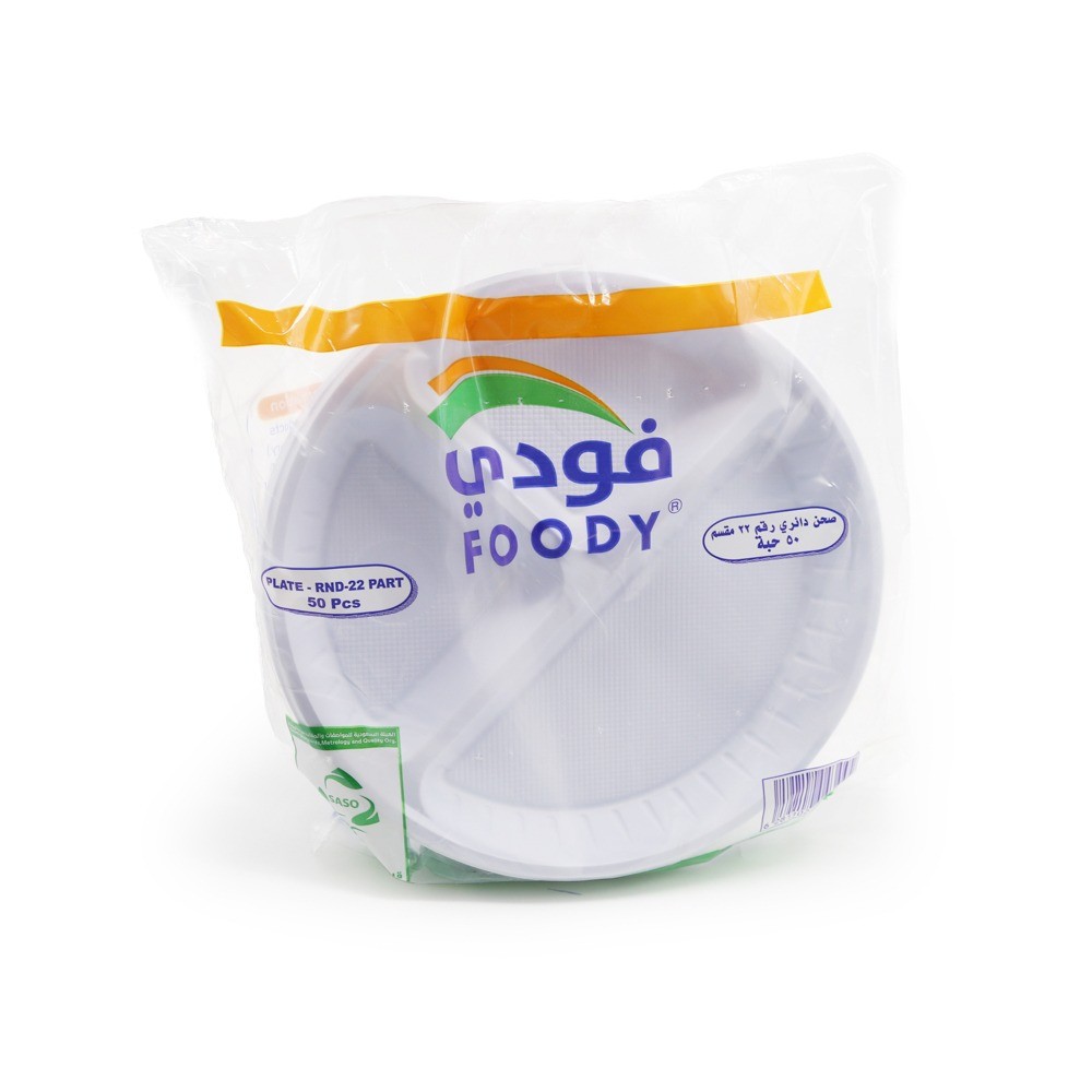 صحن بلاستيك دائري أبيض فودي رقم 22 مقسم شدة 50 حبة