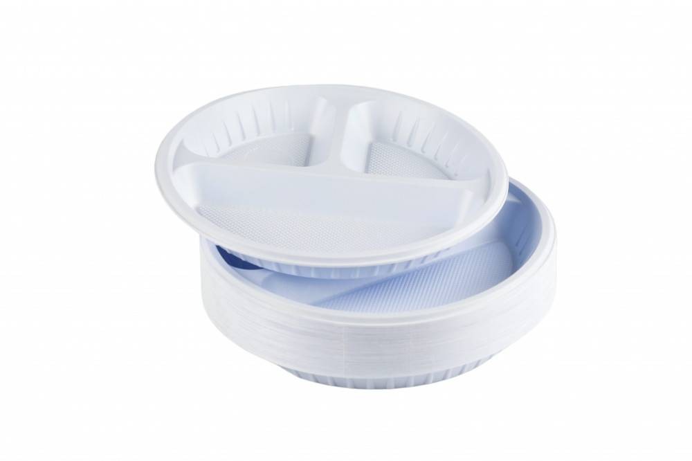 صحن بلاستيك دائري أبيض الشرق رقم 22 مقسم للعديد من الاستخدامات والتحضير السريع