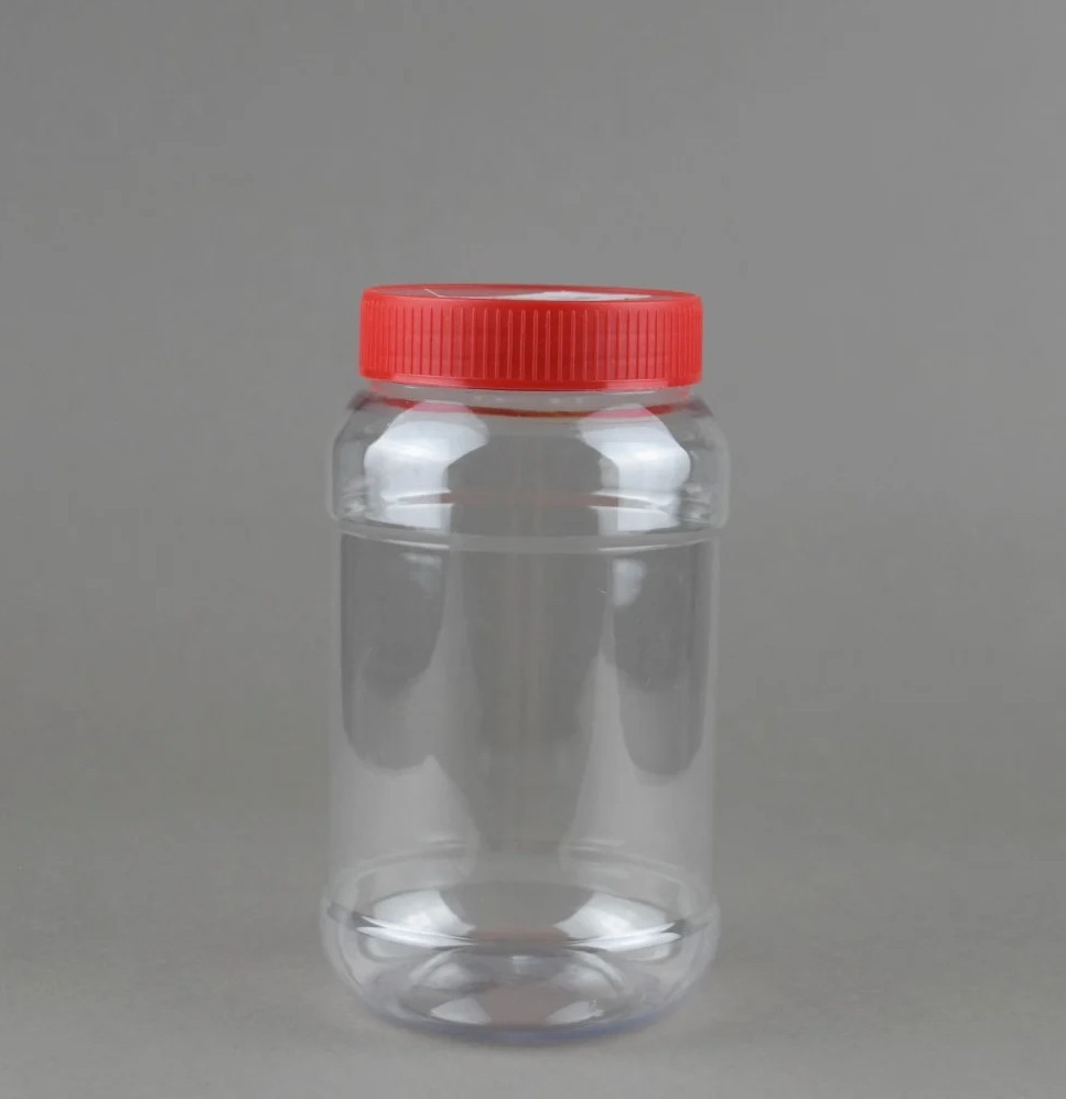 برطمان دائري بلاستيك شفاف عسق بالغطاء الأحمر 750 * 70 مل شدة 12 حبة