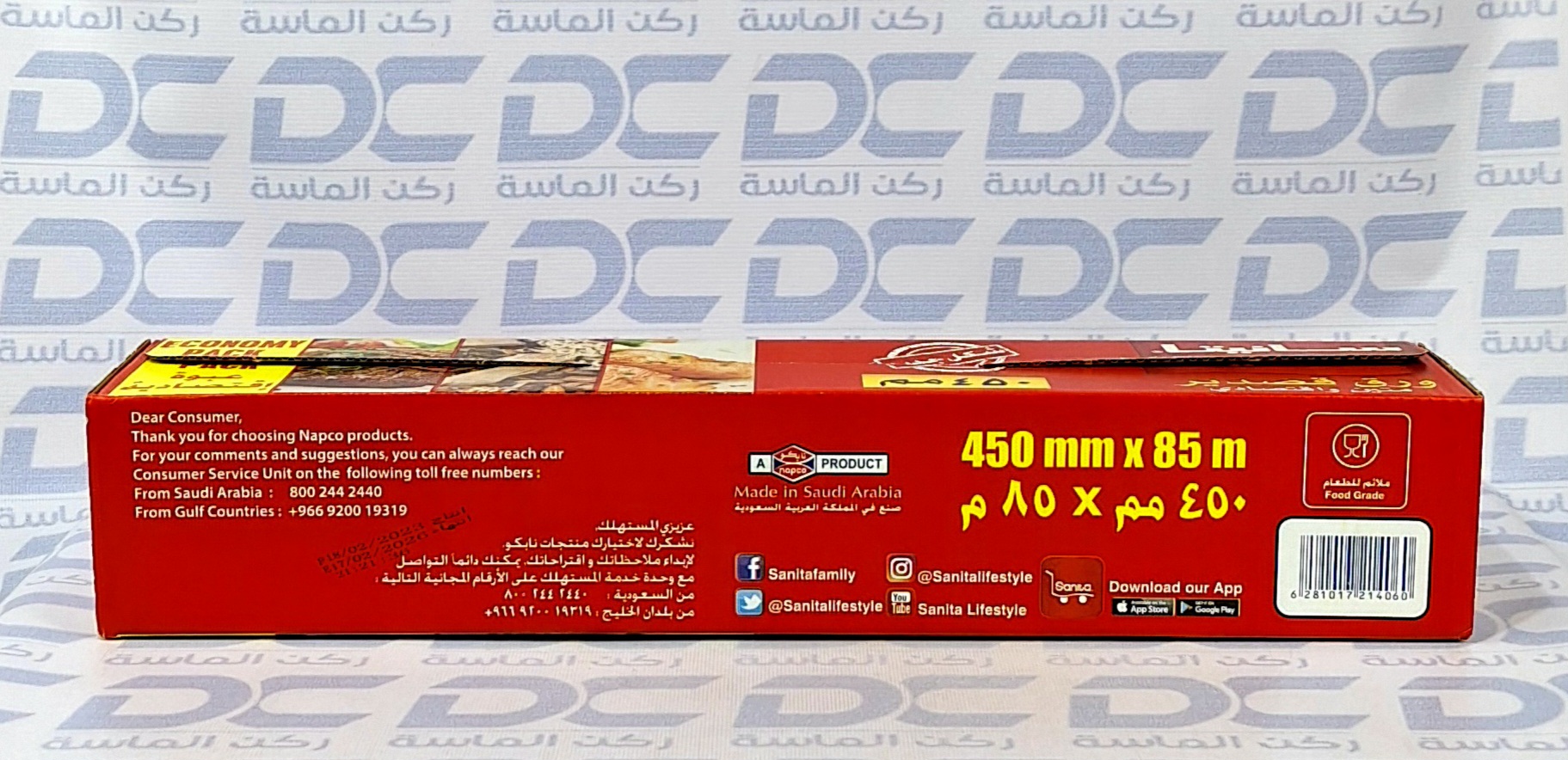 ورق قصدير سانيتا متين و إقتصادي 450مل * 85 م عبوة إقتصادية بالحبة