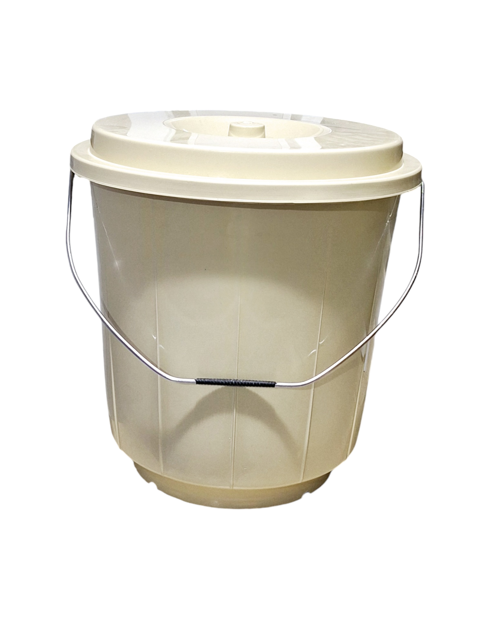 سطل سعته: 20 لتر. مادة الصنع فائقة الجودة. غطاء متين وخفيف في الوقت نفسه. مقبض من الفولاذ القوي حتى لا يسقط الدّلو أو يندلق ما بداخله. صالح للاستخدام كسلة قمامة خفيفة في الغرف. يصلح لتخزين الحبوب أو المواد الغذائية في المطبخ. شكل أنيق ومتميز.