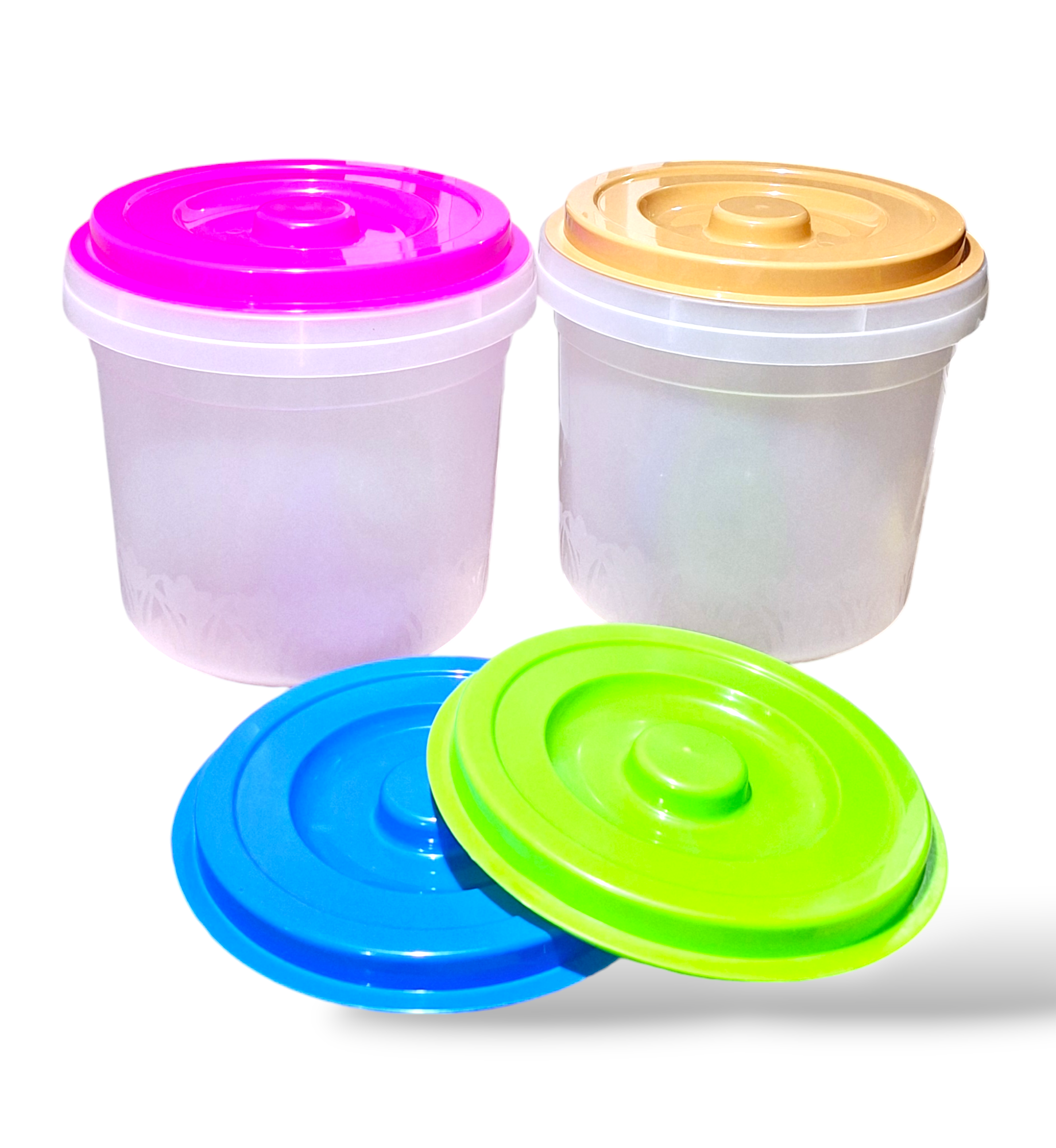 حافظة طعام بلاستيك شفاف دائرية بالغطاء الملون 10 لتر