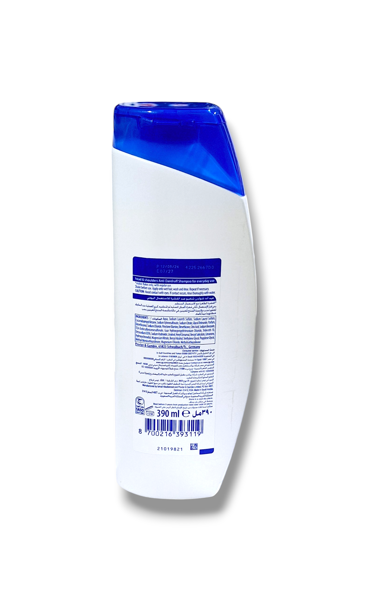 شامبو هيد اند شولدرز ضد القشرة إنسيابي وحريري للشعر العادي إلى الجاف، حتى المصبوغ والمعالج كيميائياً سيطرة على التجعيد لمدة 24 ساعة مع مرطب للشعر يساعد على تنعيم وإصلاح الشعر الجاف والمجعد لمظهر حريري وناعم شامبو لطيف ومتوازن الحموضة للإستعمال اليومي