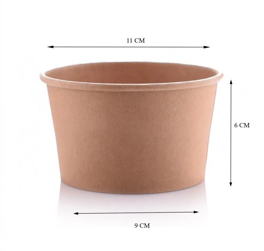 زبدية ورق بني كرافت دائرية بالغطاء لحفظ وتعبئة الطعام والمأكولات الطازجة والشوربة بأنواعها , للاستخدام بالمطاعم والمنازل اثناء الخروج في العطلات الأسبوعية واوقات الراحة وأيضا استخدماها في العمل مثل الانش بوكس وقت الغداء