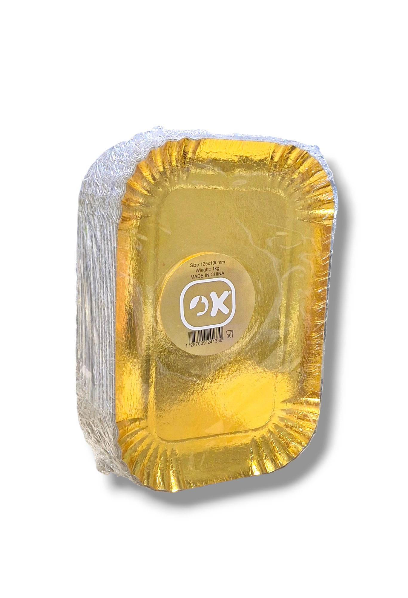 صحون حلا سميكة وعالية الجودة لامعة بلون ذهبي جميل شكلها مستطيل يسمح باحتواء حلا كثير مصنوعة من ورق الكرتون العالي الجودة يمكنك الحصول على الكثير بسعر يرضيك خفيفة عند حملها و ثابتة عند وضع الحلا عليها لا تتكسر ولا تطوى بسهولة تتحمل رطوبة الحلا صحية لا تفرز أي مواد كيميائية صحون جميلة بتصميم أنيق تسر الناظر إليه