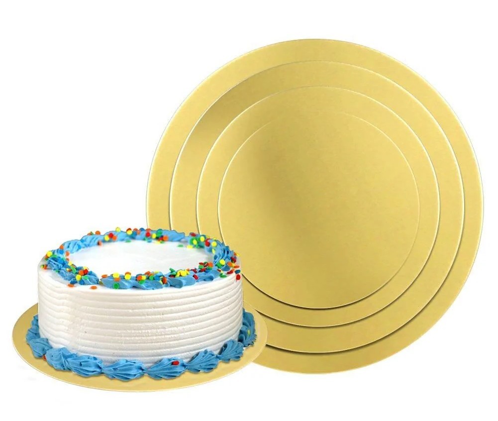 قواعد كيك ذهبية دائرية، المصنوعة من ورق مقوى مضغوط بعدة طبقات لتوفر دعماً ممتازاً وثباتاً عند التقديم. هذه القواعد مثالية للاستخدام في محلات الحلى والكيك، كما أنها تسهّل تقديم الطلبات والأطعمة في المناسبات الخاصة مثل الحفلات والزواجات.