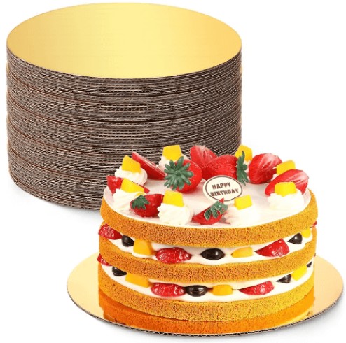 قواعد كيك ذهبية دائرية، المصنوعة من ورق مقوى مضغوط بعدة طبقات لتوفر دعماً ممتازاً وثباتاً عند التقديم. هذه القواعد مثالية للاستخدام في محلات الحلى والكيك، كما أنها تسهّل تقديم الطلبات والأطعمة في المناسبات الخاصة مثل الحفلات والزواجات.
