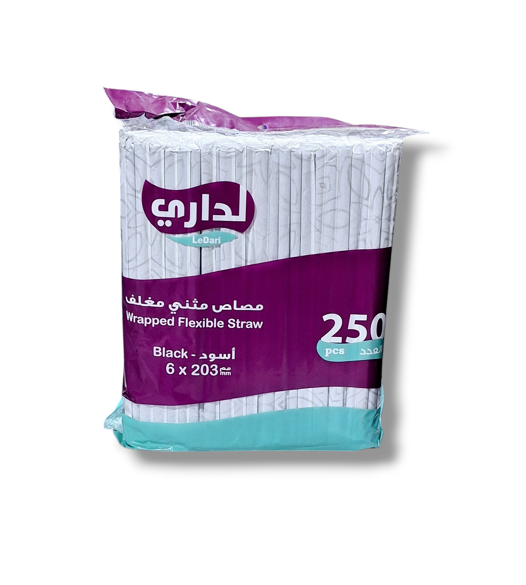 مصاص عصير مثني أسود مغلف لداري عدد 250 حبة ( 6 * 203 مم )