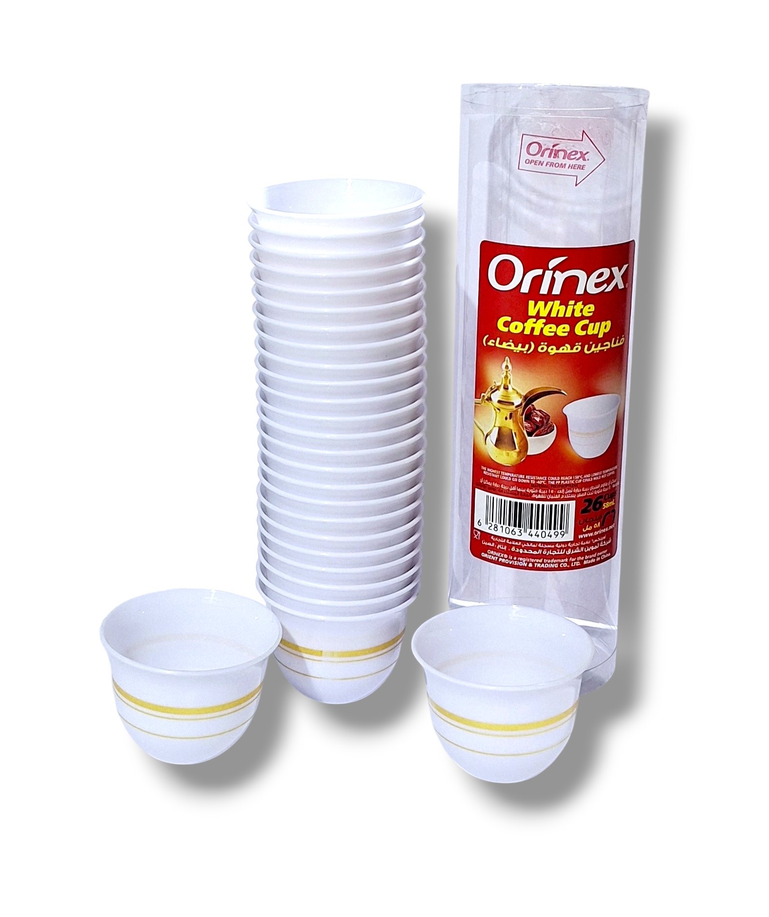 فناجين قهوة بيضاء بلاستيك أورينكس 58 مل ( 26 حبة )