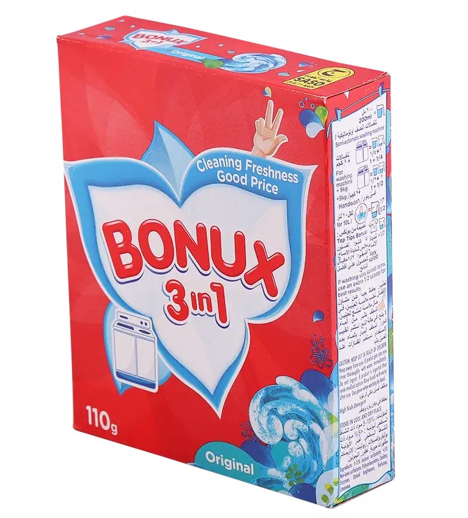 بونكس مسحوق غسيل عالي الرغوة هو منتج تنظيف فعال للملابس المتسخة والبقع الصعبة. يحتوي على تركيبة تعمل على إزالة الأوساخ والبقع بسهولة، كما أنه يمنح الملابس رائحة منعشة لطيفة