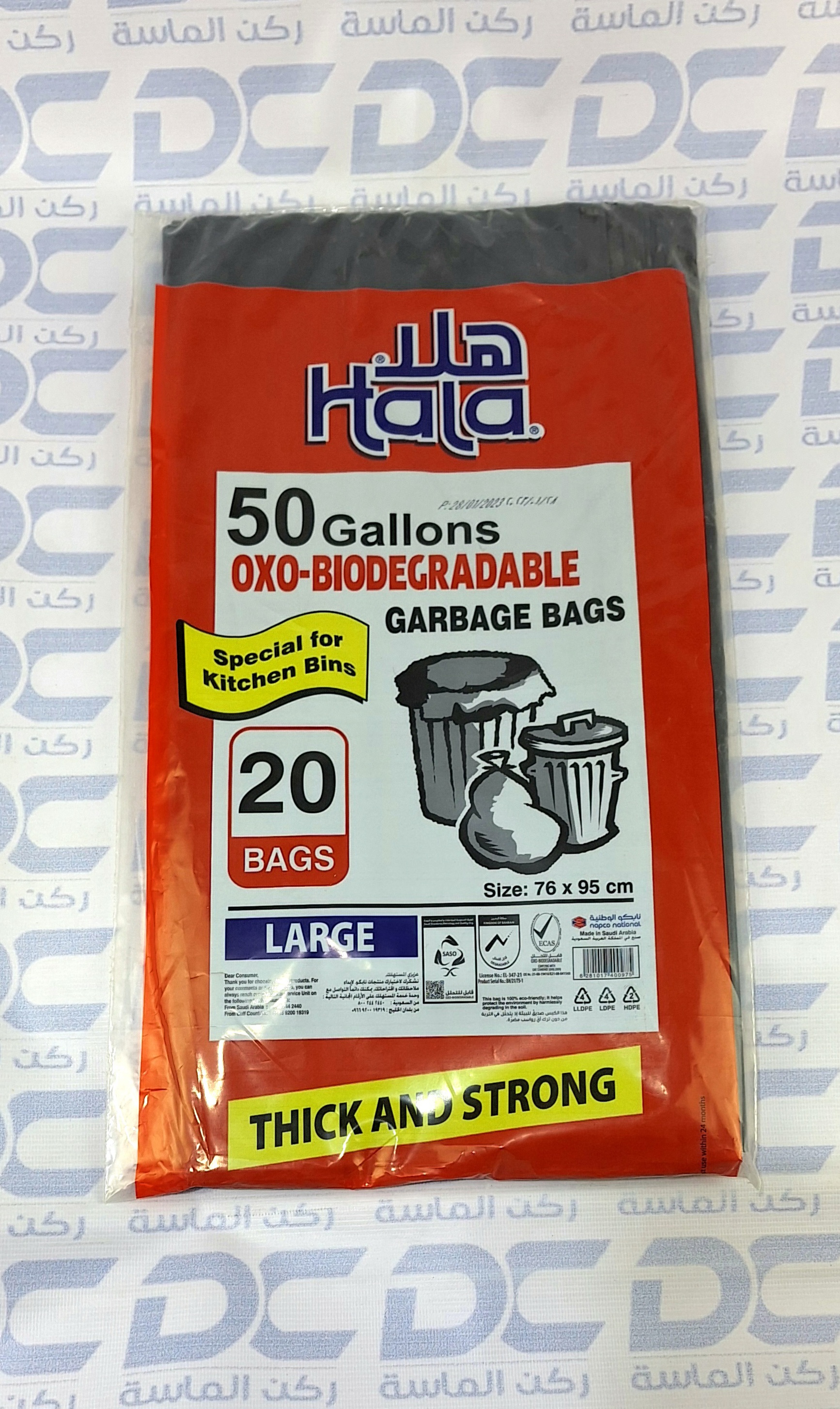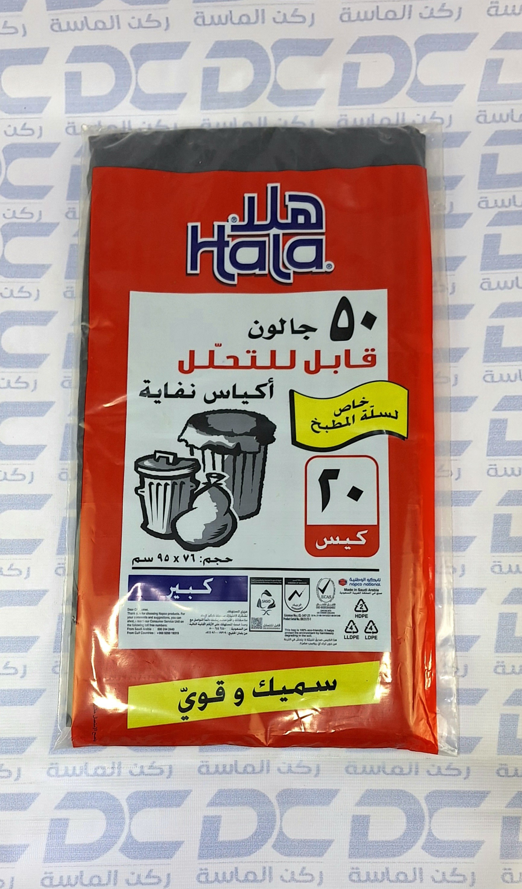 أكياس نفاية هلا 20 كيس 50 جالون خاص لسلة المطبخ كبير سميك وقوي