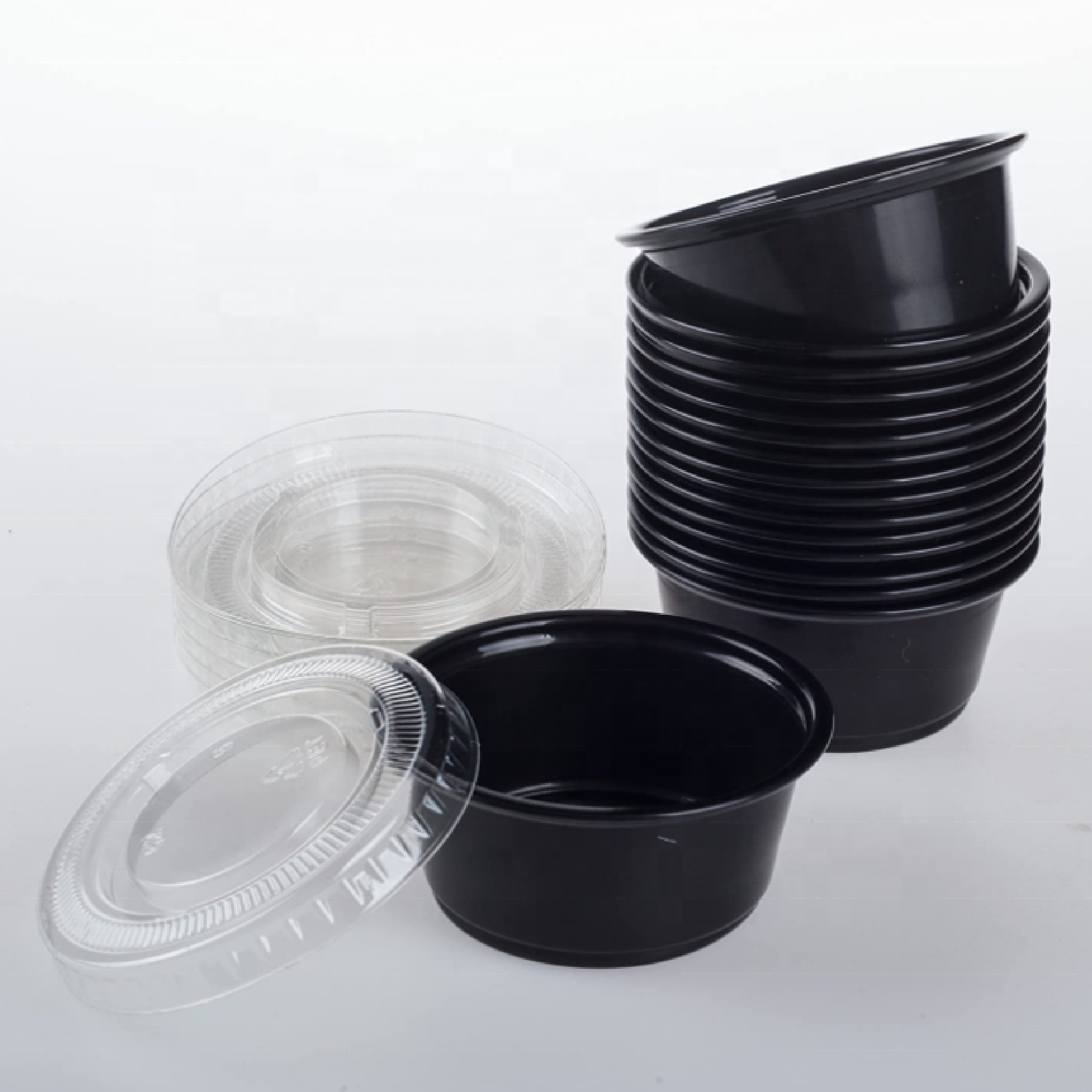 علب صوص بلاستيك أسود 2 أونص مع غطاء شفاف شتا بلاست شدة 100 حبة